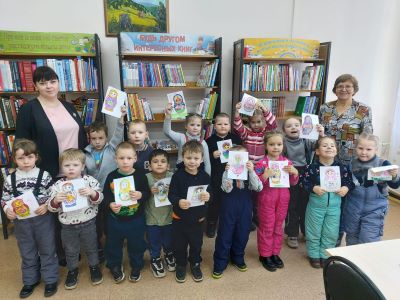 Матрёшка-настоящая русская красавица! Румяная, нарядная, на голове красивый платочек.24 октября эта замечательная куколка отмечает свой день рождения. Библиотекарь Олькова Наталия Юрьевна вместе с воспитанниками детского сада «Ёлочка» решили поздравить матрёшку с праздником. Сначала Наталия Юрьевна познакомила детей с историей появления игрушки, показала как выглядела первая матрёшка, и, как расписывают матрёшку современные художники. В завершении мероприятия малыши сделали подарки куколкам, разрисовав яркими цветами наряды русских красавиц.