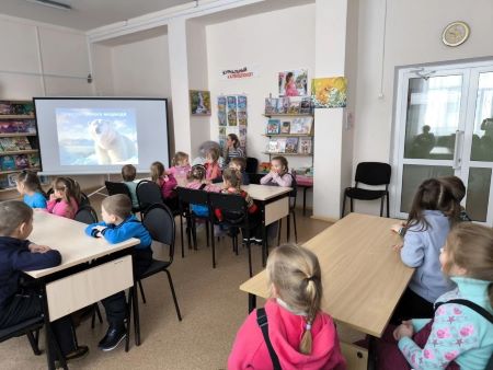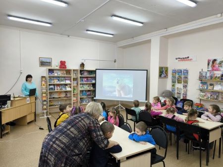 27 февраля ежегодно отмечается Международный день белого медведя. У северных народов белый медведь является любимым персонажем сказок, обрядов и праздников. Они считают его старшим родственником-дедушкой и даже отказываются называть медведя « белым медведем», опасаясь обидеть его. Сегодня воспитанники детского сада «Золотой петушок» вместе с библиотекарем Ольковой Наталией Юрьевной совершили путешествие в царство белого медведя. Дети узнали интересные факты об этих удивительных животных. Например, что шерсть белого медведя совсем не белая, а прозрачная. О том, какие медведи умные и терпеливые охотники и заботливые мамы. И конечно же вспомнили самого знаменитого сказочного белого мишку-Умку.
