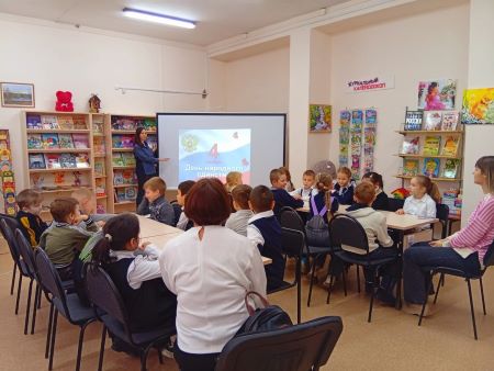 Сегодня в нашей библиотеке прошел патриотический час «Сила России в единстве», посвященный Дню Народного единства. День народного единства – один из самых молодых государственных праздников, однако события, которые мы вспоминаем в этот день, произошли очень и очень давно. Библиотекарь Абакумова Светлана Юрьевна рассказала нашим гостям – первоклассникам школы №4 об истории возникновения праздника, о народном ополчении во главе с Мининым и Пожарским, а также о единстве русского народа в смутные времена. Ребята поговорили о родном крае, вспомнили символы России, узнали насколько же богата и многонациональна наша страна. Сейчас — в ней живет более 180 разных народов. В завершении мероприятия ребята сделали себе по браслету «единства» и пришли к выводу, что хотя нас так много и все мы такие разные, всех нас объединяет одно - любовь к своей Родине.